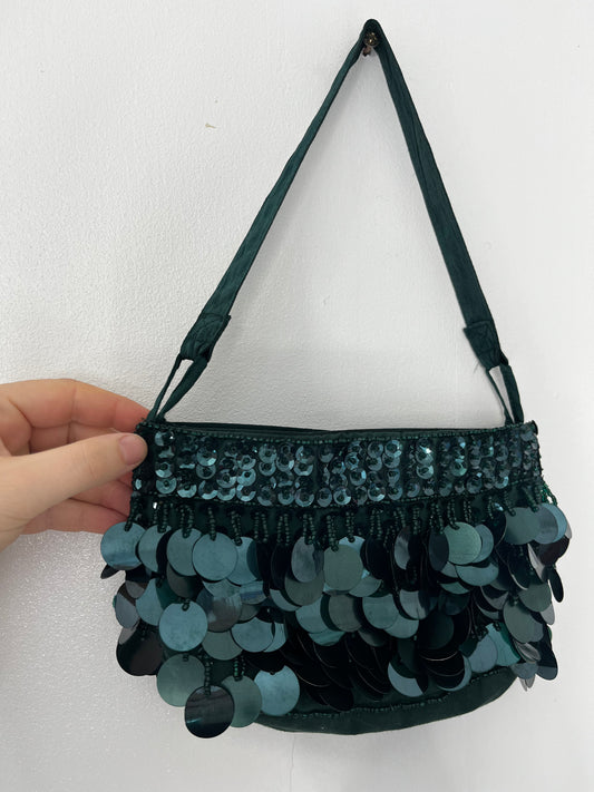 True vintage green large sequinned bag
