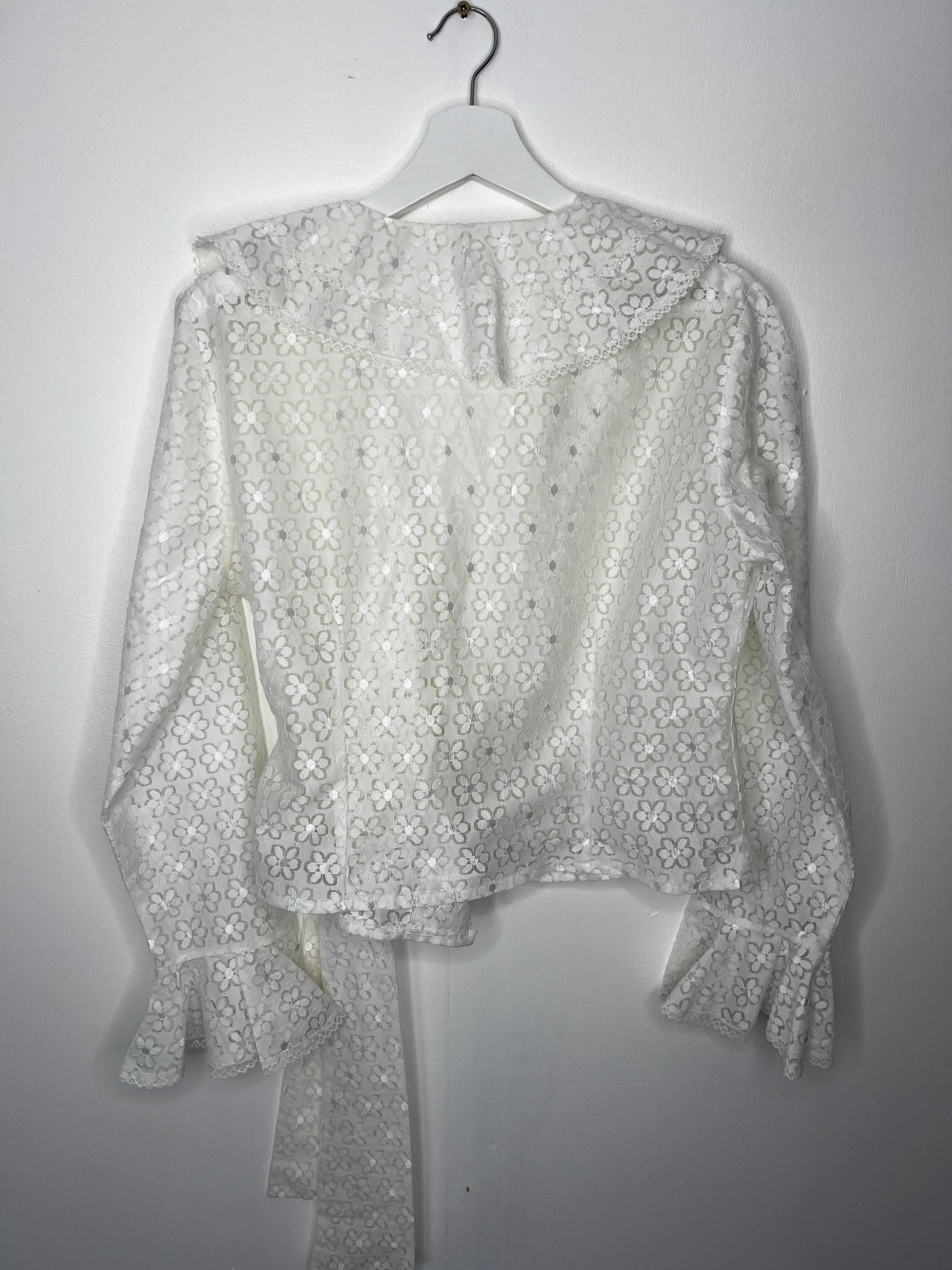 1970s Romantic Lace Ruffle Vintage Wrap Blouse