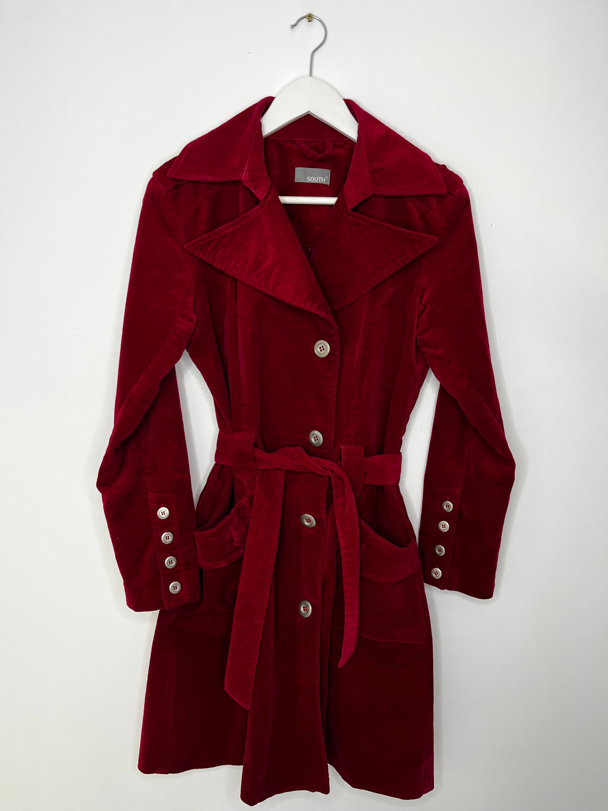 Long Belted Cherry Red Suede Feel Coat