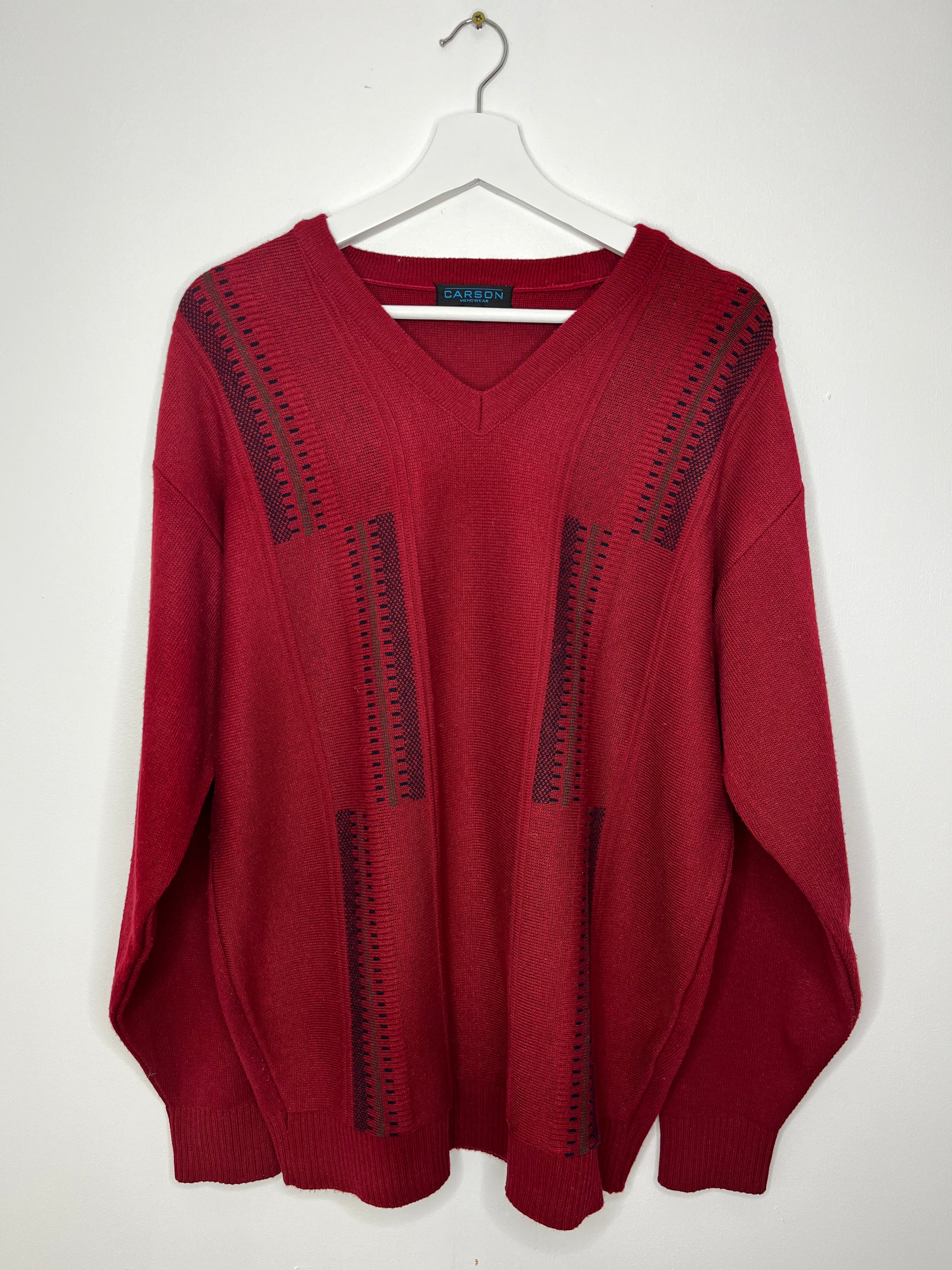 Red V Neck Vintage Jumper