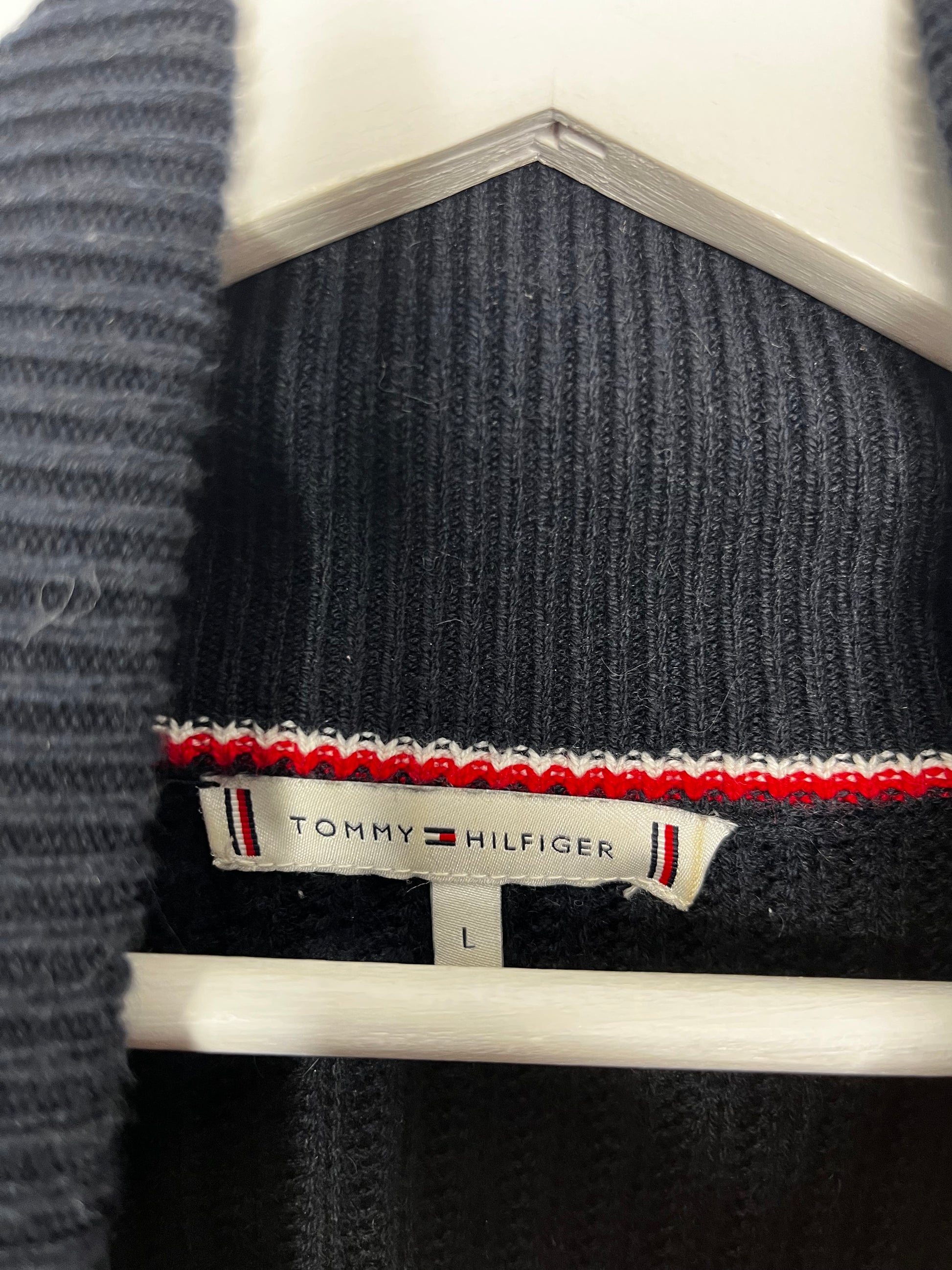 Ribbed Navy Tommy Hilfiger Spell Out Zip Effect Jumper