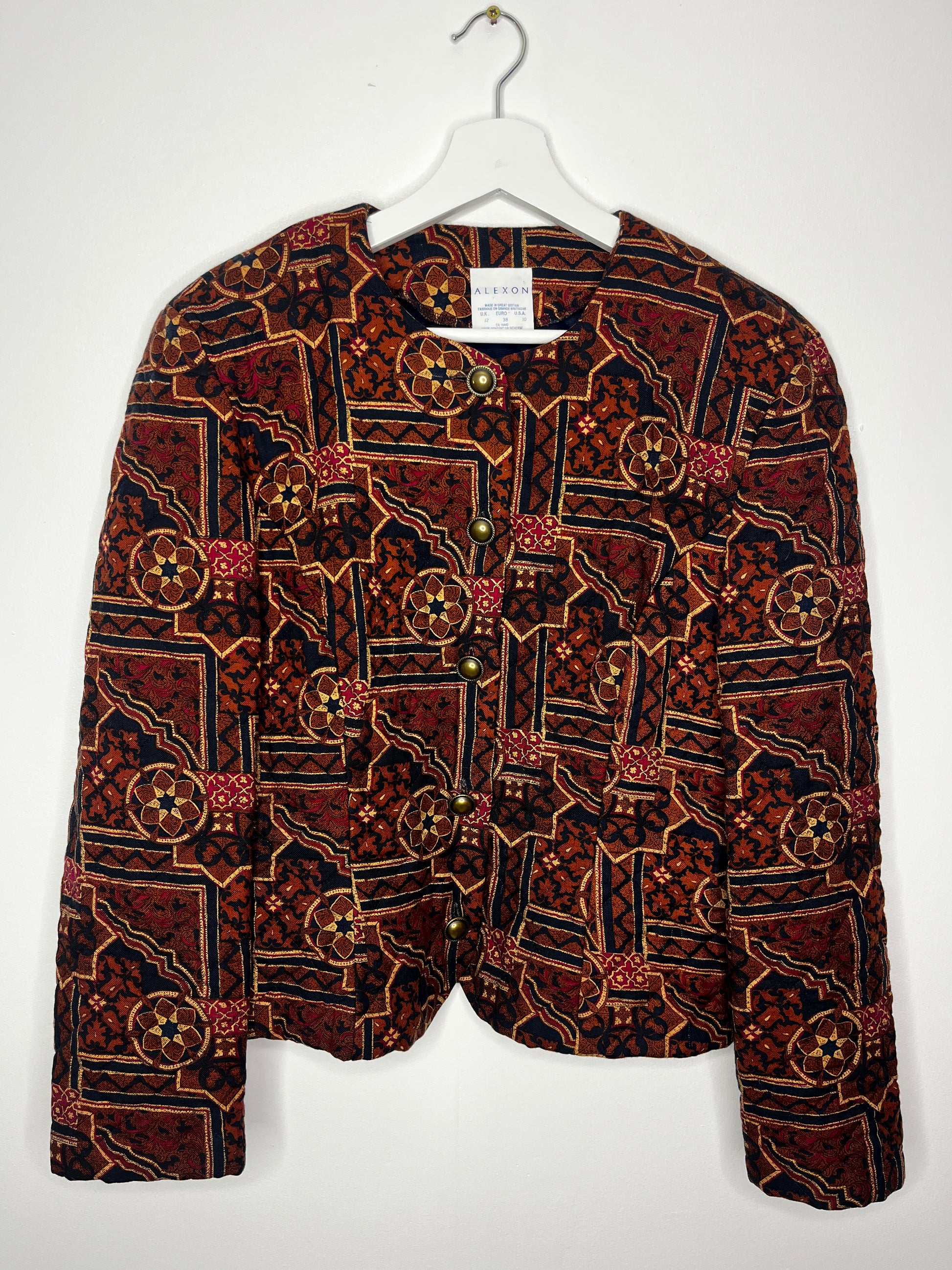 True Vintage Collarless Patterned Quilted Jacket