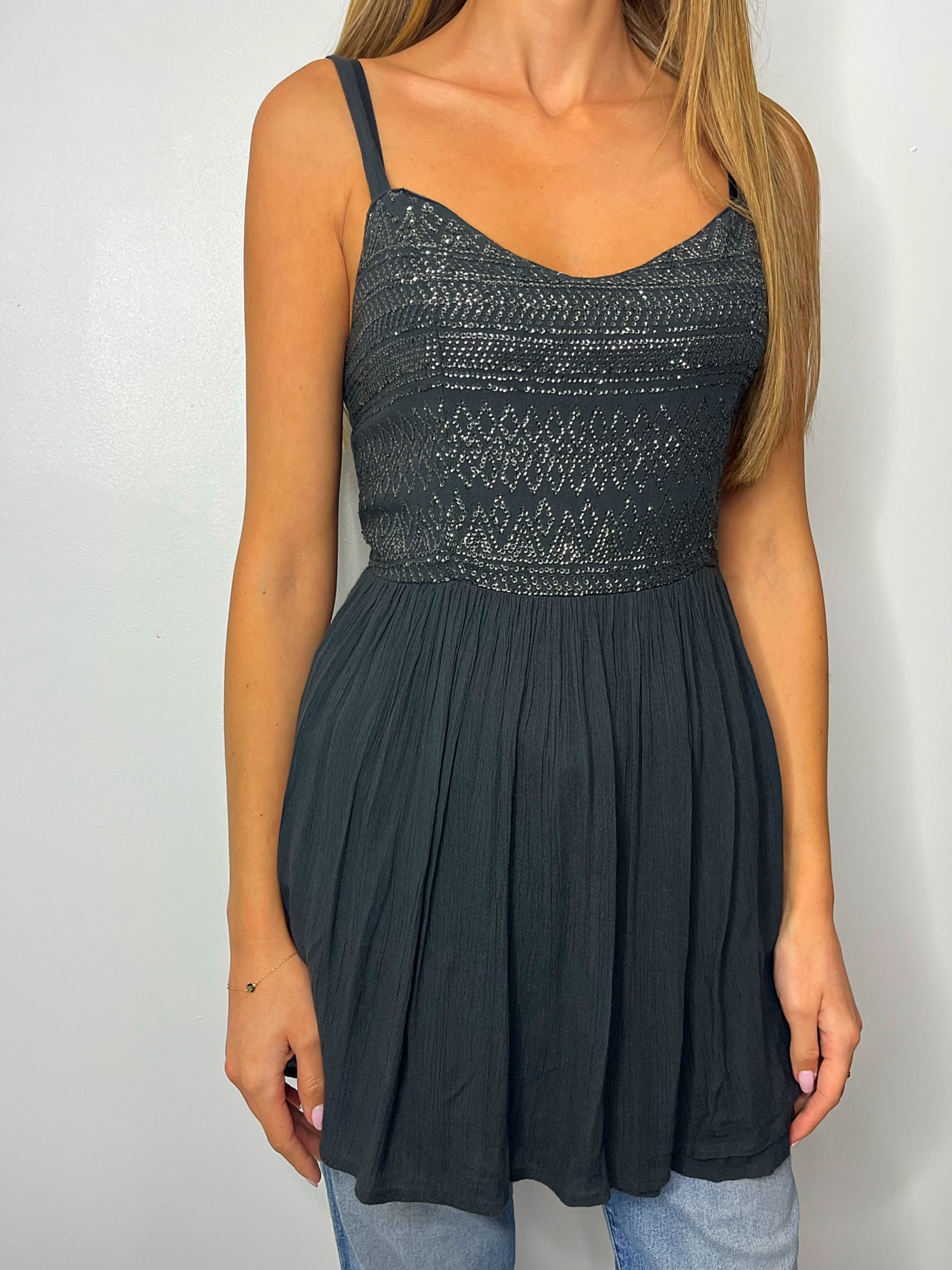 Y2k Silver Hollister Strap Floaty Top